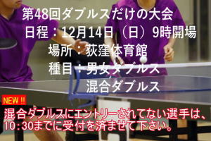 12月2日《ダブルスだけの大会受付時間のお知らせ》