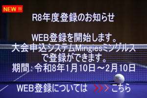 12月11日《R8年度杉並区卓球連盟 登録のお知らせ》