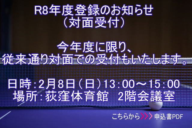 ●杉並区卓球連盟登録は、「大会検索/申込」からです。
